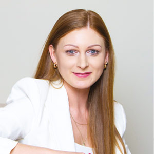 Mgr kosmetologii oraz podologii, szkoleniowczyni – ekspertka profesjonalnej pielęgnacji zarówno twarzy, jak i stóp. W swojej pracy zajmuje się przede wszystkim tworzeniem spersonalizowanych planów pielęgnacyjnych i terapii zabiegowych.