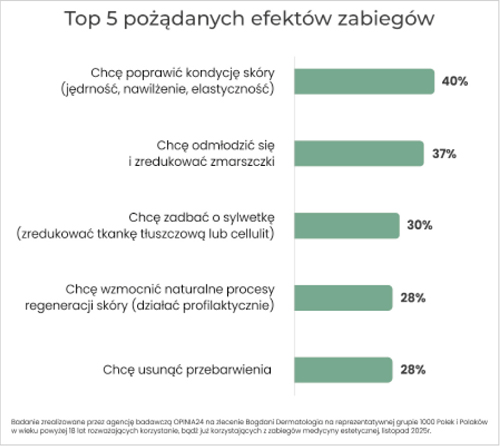 Badanie zrealizowane przez agencję badawczą OPINIA24 na zlecenie Bogdani Dermatologia na reprezentatywnej grupie 1000 Polek i Polaków w wieku powyżej 18 lat rozważających korzystanie bądź już korzystających z zabiegów medycyny estetycznej, listopad 2025 r.