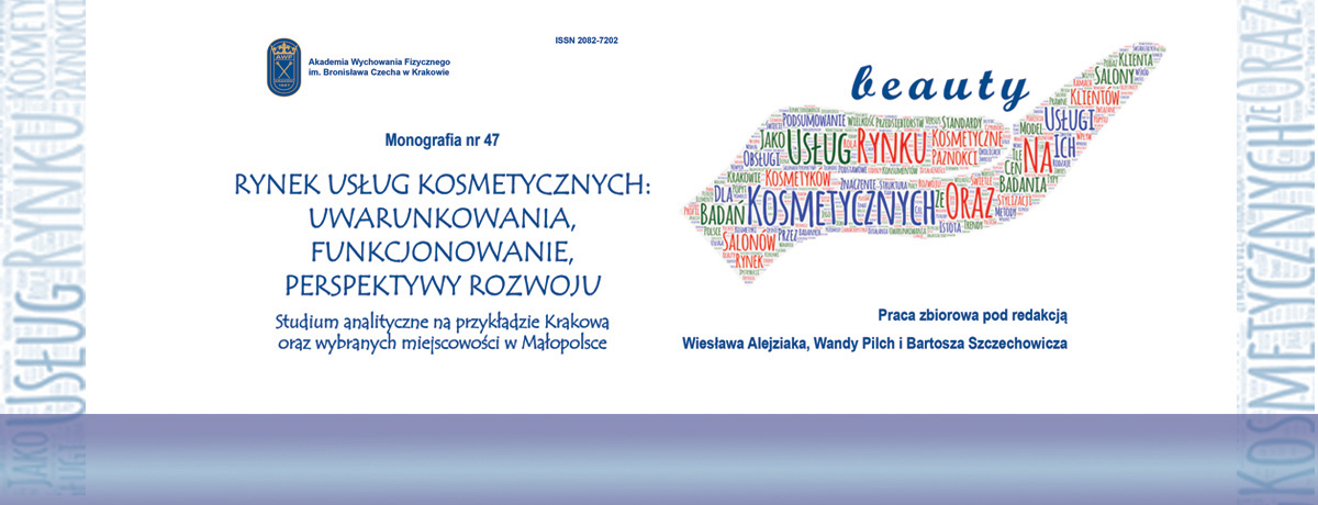 Powstała ona jako rezultat wspólnych badań prowadzonych w Akademii Wychowania Fizycznego w Krakowie przez pracowników Instytutu Przedsiębiorczości i Zarządzania oraz Katedry Kosmetologii. Zespół autorów tworzą (w kolejności alfabetycznej): W. Alejziak, N. Kordas, G. Kromka, M. Kryczka, A. Mależyna, S. Matusik, P. Pastuszak, A. Piotrowska, J. Raciborski, B. Szczechowicz. Monografia ma walory naukowe, ale może też służyć jako pomoc dydaktyczna w nauczaniu przyszłych specjalistów z zakresu kosmetyki i kosmetologii. Monografia jest dostępna w wersji elektronicznej w Repozytorium AWF w Krakowie (http://repozytorium.awf.krakow.pl/handle/20.500.12053/1007), natomiast w wersji drukowanej można ją nabyć w Wydawnictwie AWF w Krakowie (https://wydawnictwa.awf.krakow.pl/).